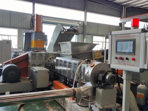 - 應(yīng)用場景:適用于加工單一原料或回收料,如PE、PP薄膜回收等;在做回收塑料時,因換網(wǎng)模面更大,下料更加容易,效果較好;對于一些改性塑料、彩色色母、混色抽粒等場景,與雙螺桿造粒機效果不分伯仲。